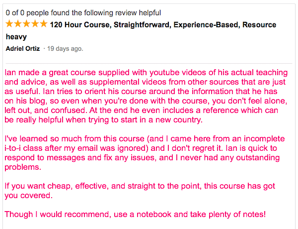 I think Adriel made an interesting point about the course and the resources. Most TEFL course providers keep everything behind a paywall and that access is usually limited to a number of months. However, there are a lot of free resources on the site such as how-to videos, guides and other helpful resources that can be found in the blog.